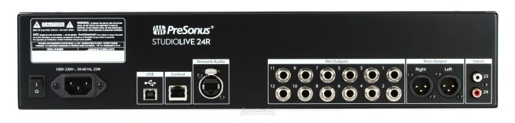 The PreSonus StudioLive 24R delivers outstanding performance as both a rackmount mixer and a stagebox for your StudioLive Series III console. It features 24 high-quality XMAX preamps, versatile I/O, and...
